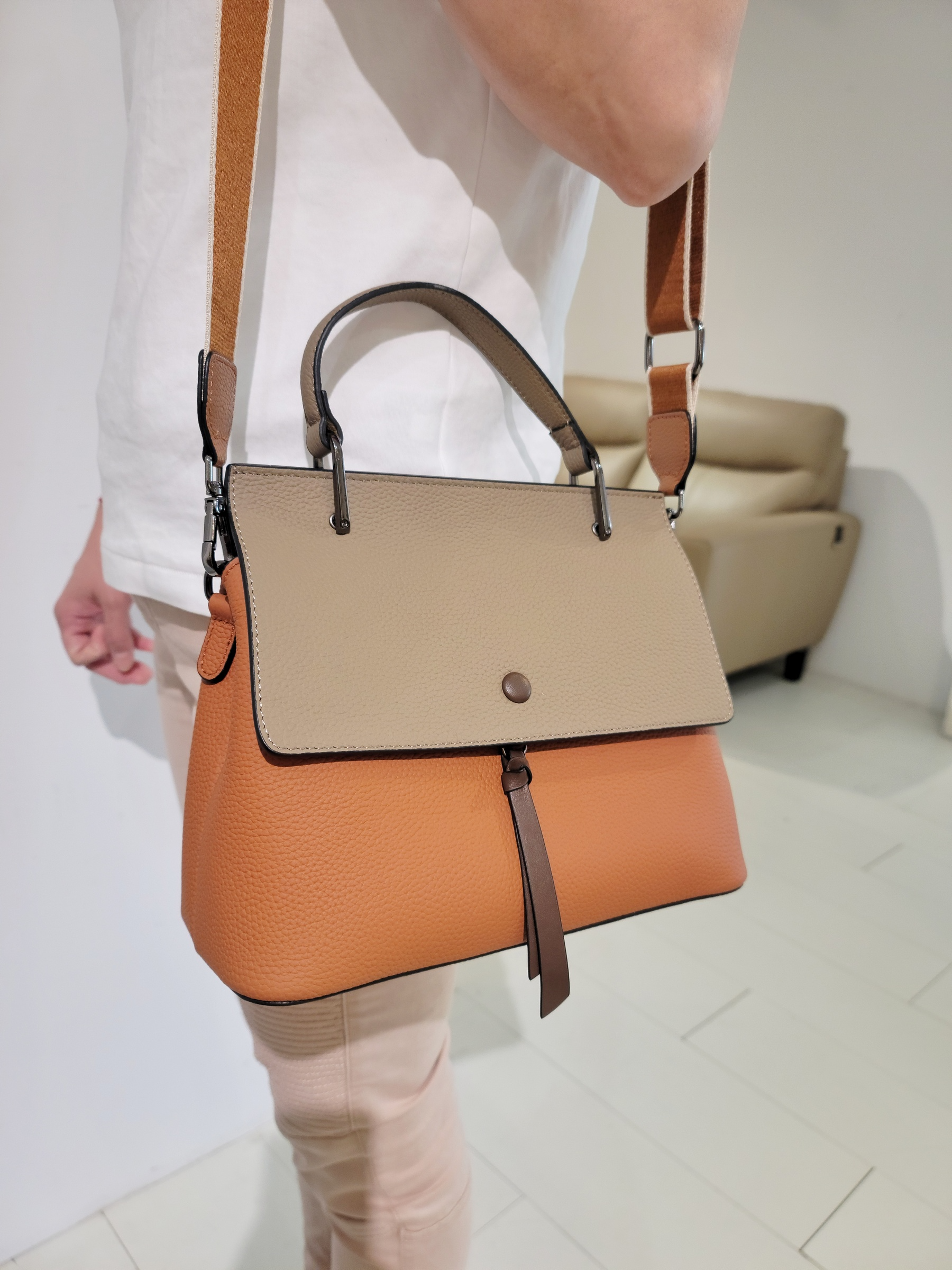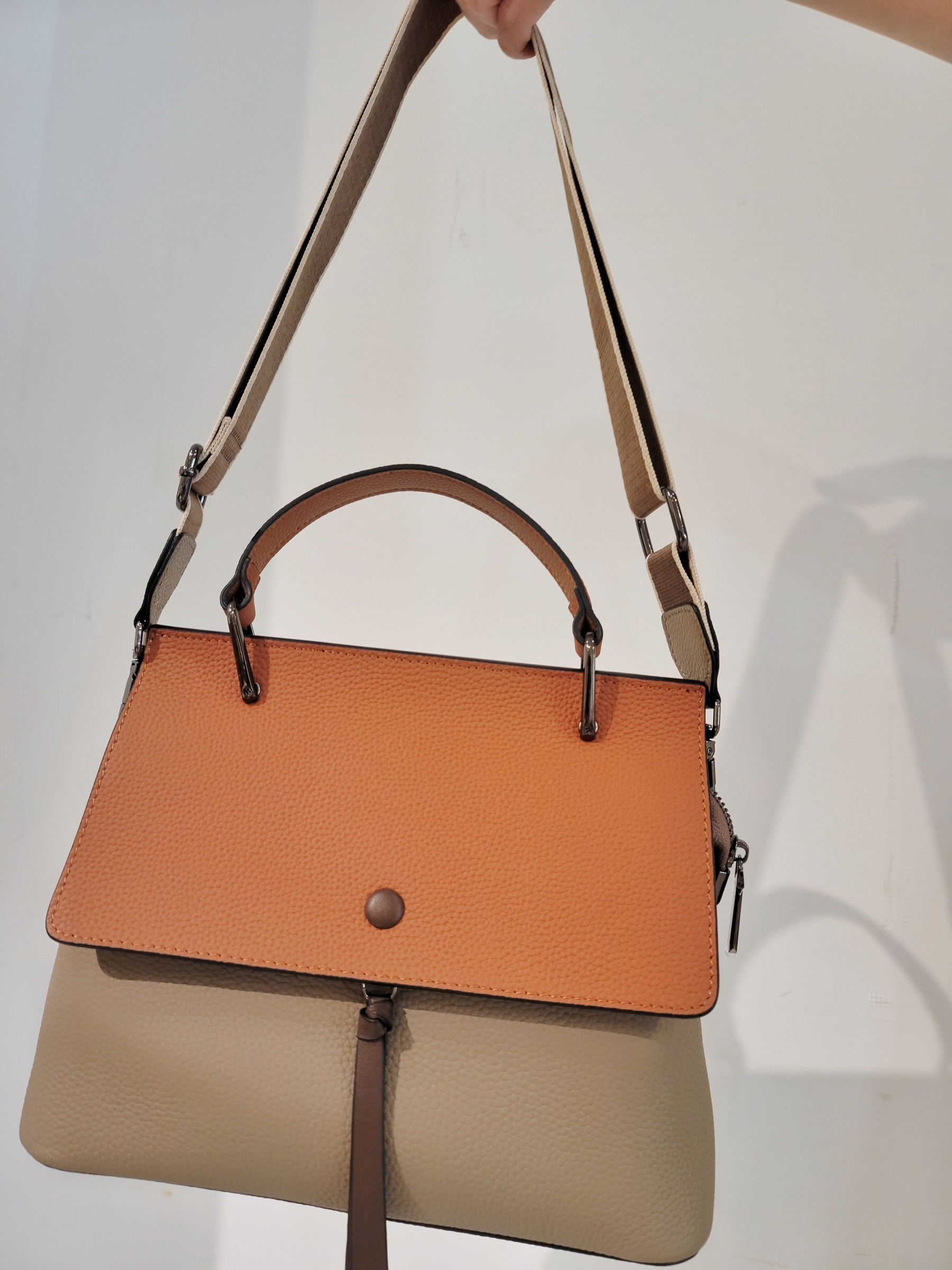 【荔枝紋牛皮撞色翻蓋包 - 4色】
